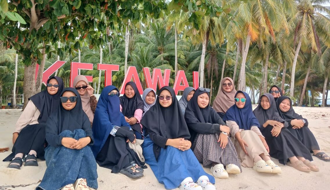 Setelah perjalanan laut sekitar 30 menit, rombongan santri akhirnya tiba di Pulau Ketawai. Dari kejauhan, tulisan “Ketawai” yang dicat dengan warna merah menyambut kedatangan mereka. Pemandangan yang memukau dengan pantai yang bersih dan air laut yang jernih langsung menghipnotis para santri.