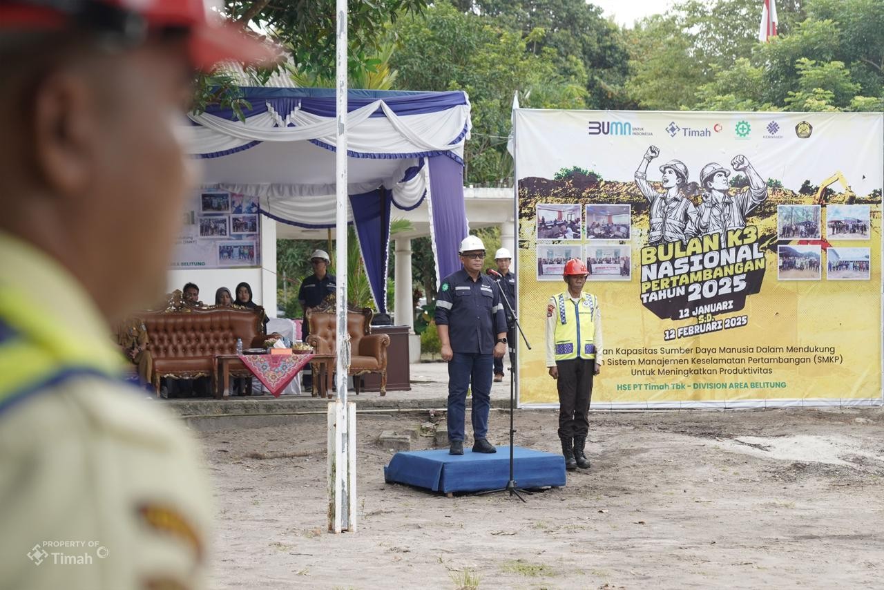 Di Belitung, PT Timah Area Belitung menggelar Apel Peringatan Bulan K3 Nasional di Halaman Kantor Department Pengawas Produksi Darat, Tanjungpandan, Kabupaten Belitung, pada Selasa (11/2/2025).