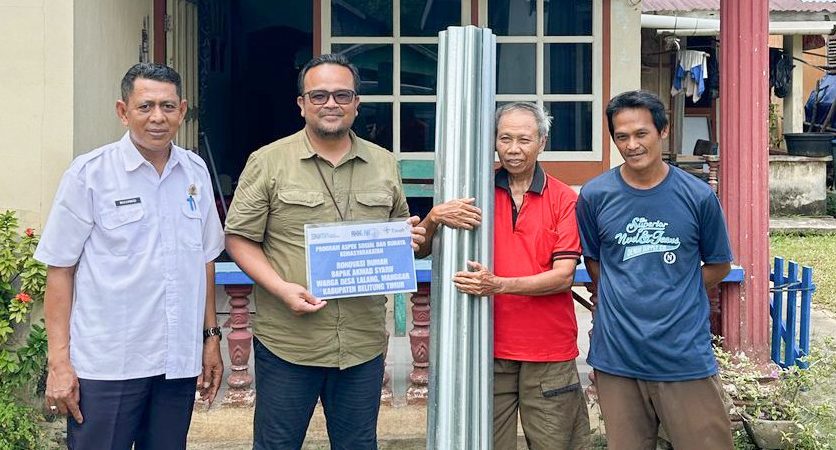Kali ini, perusahaan membantu merenovasi rumah milik Ahmad Syarif, warga Desa Lalang, Kabupaten Belitung Timur, yang atap rumahnya rusak akibat terpaan angin kencang karena kedekatannya dengan laut.