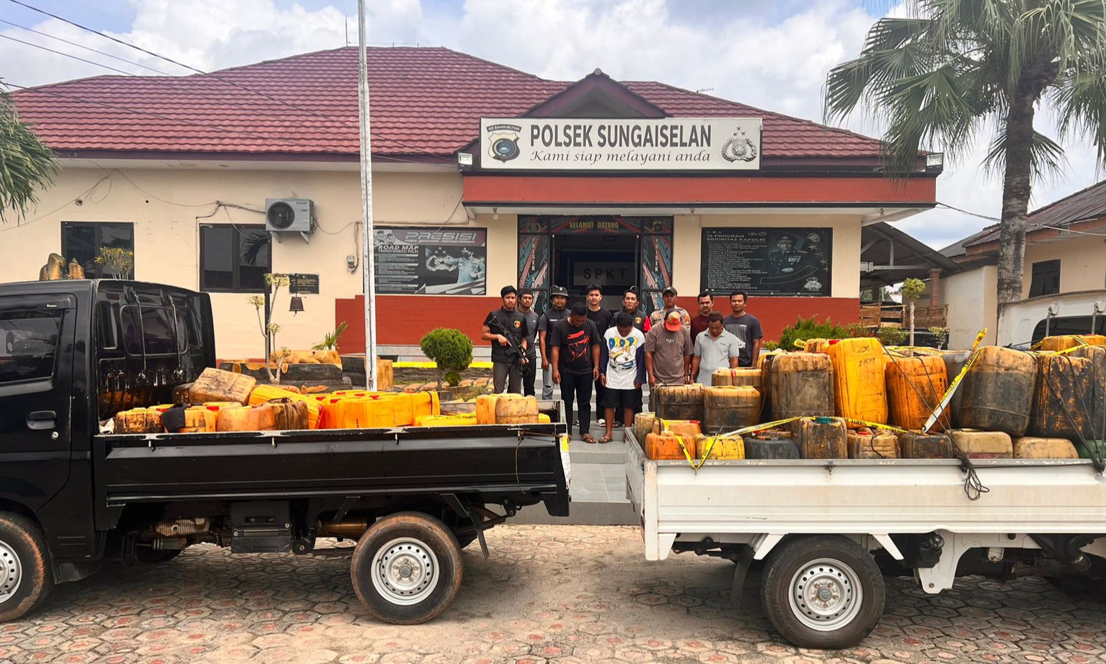 Kedua kendaraan, masing-masing berwarna hitam dan putih, langsung dibawa ke Polsek Sungaiselan untuk penyelidikan lebih lanjut. Adapun barang bukti yang disita berjumlah sekitar 1,7 ton BBM subsidi.