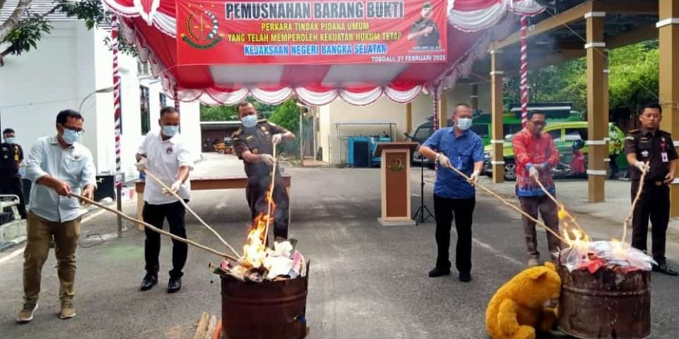 Kejari Bangka Selatan Musnahkan Bukti Kejahatan dari 49 Perkara