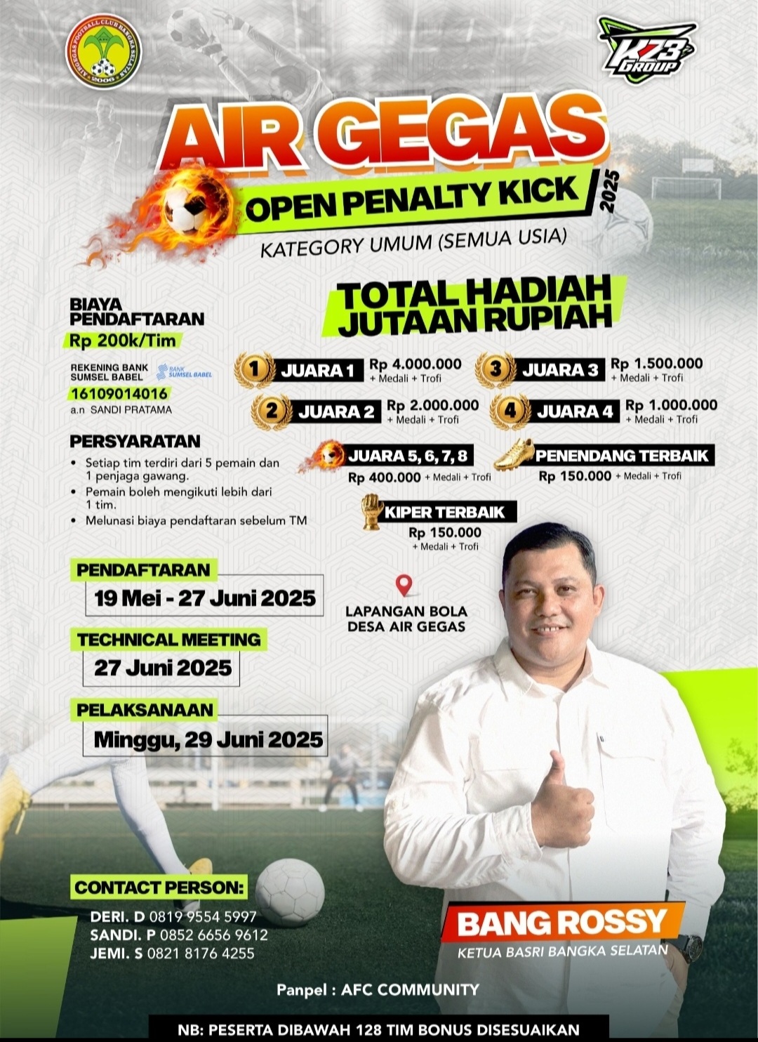 Air Gegas Open Penalty Kick 2025 Digelar, Sediakan Hadiah Jutaan dan Dukung UMKM Lokal