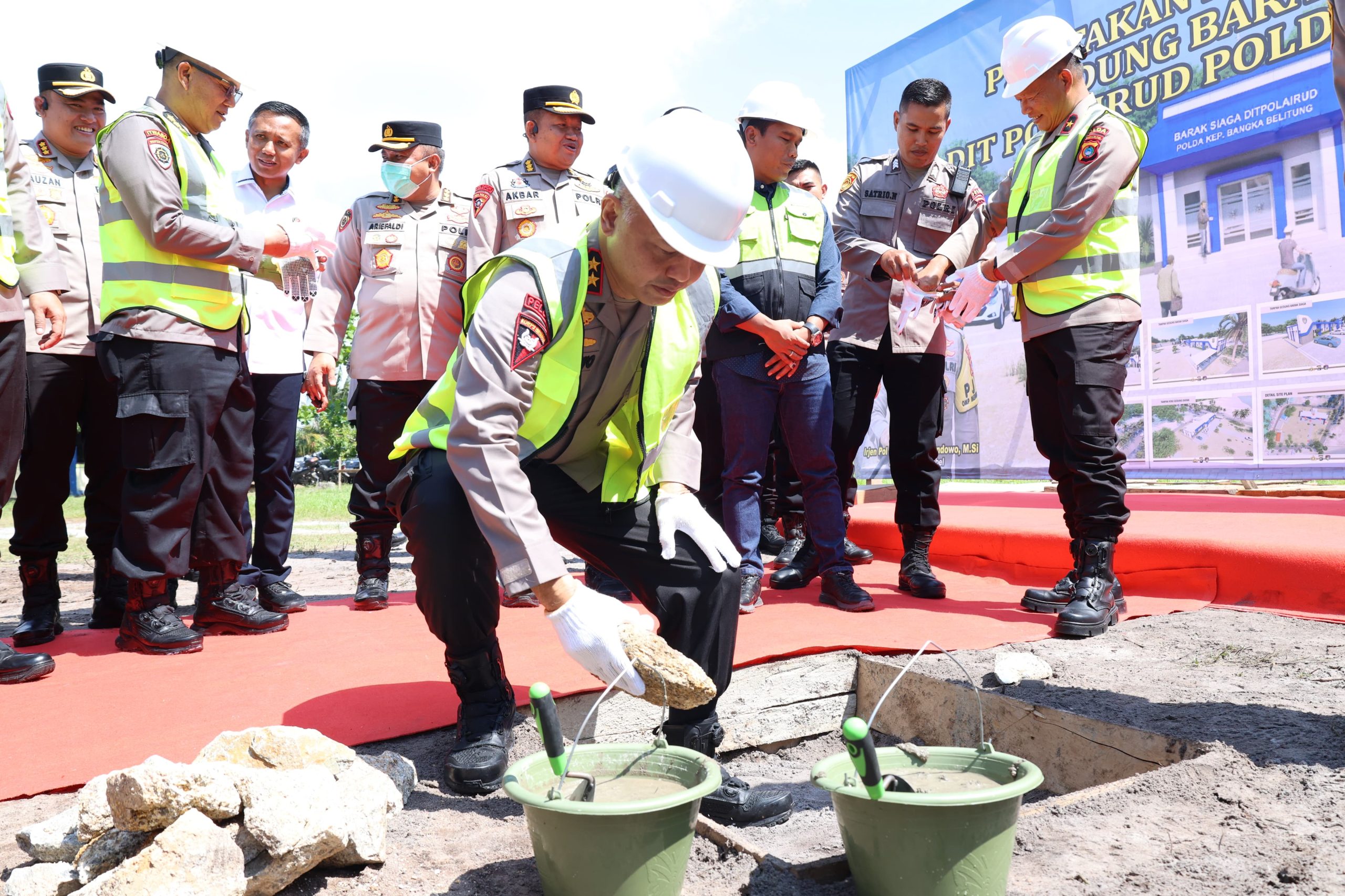 Lokasi pembangunan berada di Dermaga Air Anyir, yang menjadi pusat aktivitas operasional Ditpolairud. Acara tersebut juga dihadiri oleh Wakapolda Brigjen Pol Toby Harsono serta sejumlah pejabat utama dari Polda Bangka Belitung.