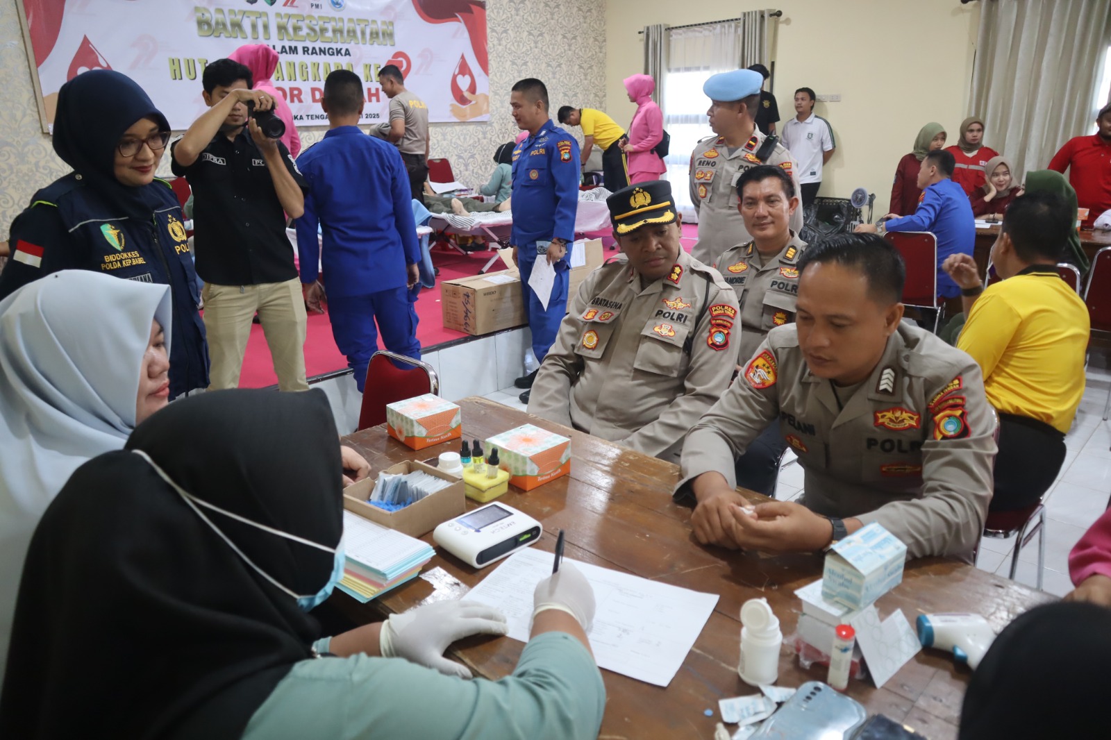 BANGKA TENGAH — Semangat kepedulian menyatu dalam momen peringatan Hari Bhayangkara ke-79. Di Aula Pratisarawirya Mapolres Bangka Tengah, Kamis (13/6/2025), ratusan personel berseragam, anggota Bhayangkari, hingga para mitra dari TNI, Satpol PP, dan instansi lainnya, duduk berjejer dengan satu tujuan: menyumbangkan darah demi kehidupan.