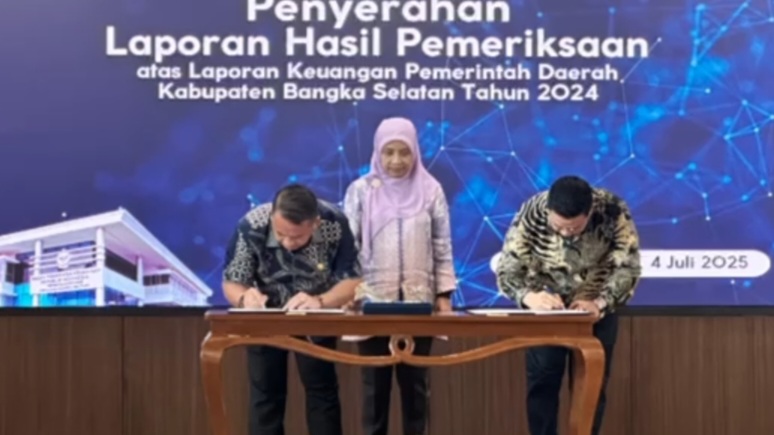 PANGKALPINANG, MEDIAQU.id – Pemerintah Kabupaten Bangka Selatan kembali meraih opini Wajar Tanpa Pengecualian (WTP) dari Badan Pemeriksa Keuangan (BPK) untuk keenam kalinya atas Laporan Keuangan Pemerintah Daerah (LKPD) Tahun Anggaran 2024.
