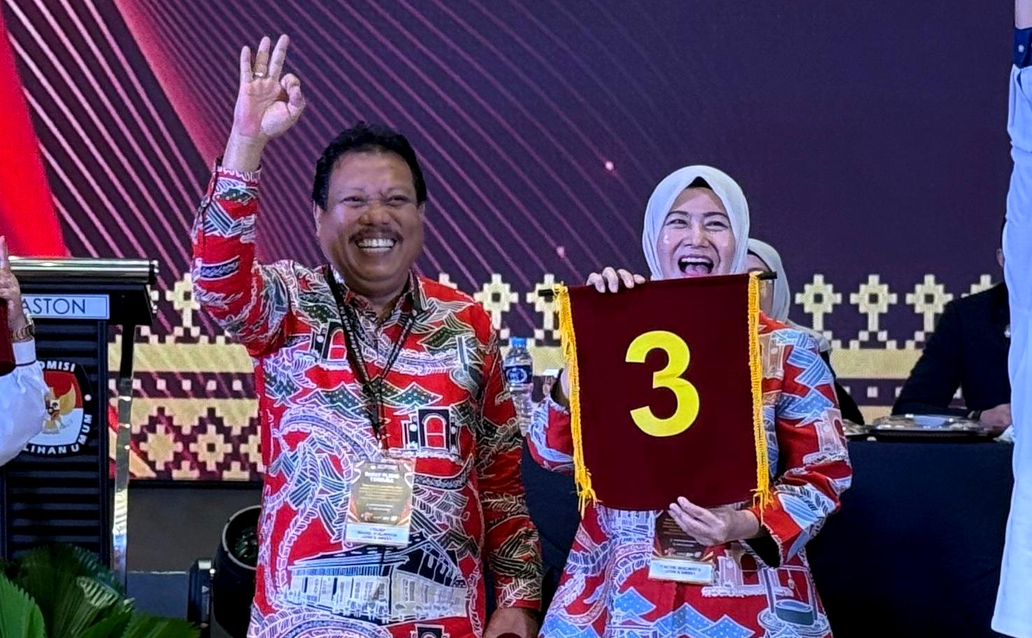 PANGKALPINANG – Pasangan Calon Wali Kota dan Calon Wakil Wali Kota Pangkalpinang, Saparudin-Dessy Ayutrisna, resmi mengantongi nomor urut 3 untuk berlaga di Pemilihan Kepala Daerah Ulang Pangkalpinang 2025.