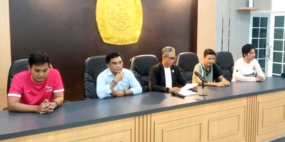 Didampingi Ketua KPU Provinsi Babael, Husin, Redi Citra dari Divisi Teknis Penyelenggaraan, Eko Iswantoro dari Divisi Hukum dan Zulkifli divisi perencanaan data dan informasi, Ketua KPU Kabupaten Bangka, Sinarto memberikan pernyatan resminya.