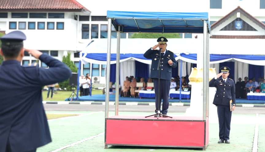 Upacara dipimpin langsung Gubernur Babel, Hidayat Arsani, yang membacakan sambutan Menteri Perhubungan, Dudy Purwagandhi.