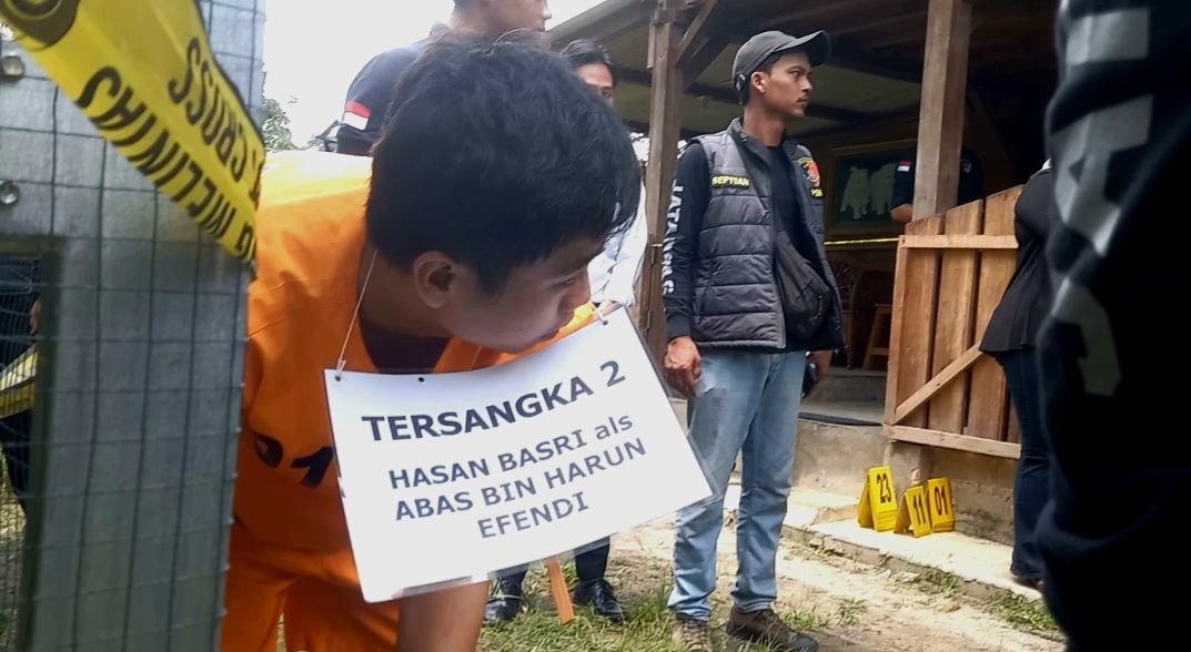 Dari hasil rekonstruksi, diketahui bahwa aksi pembunuhan terjadi ketika korban sedang berbincang dengan tersangka Hasan Basri di kebunnya.