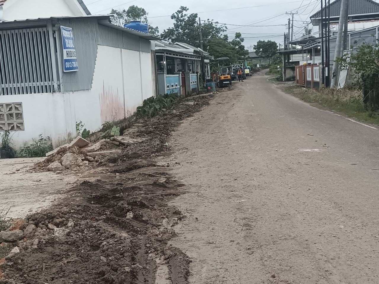 Namun di lapangan, warga menilai pekerjaan galian tidak ditangani dengan baik. Tanah sisa galian terlihat menumpuk di tepi jalan, sementara permukaan bekas galian ditimbun seadanya tanpa pemadatan yang memadai.