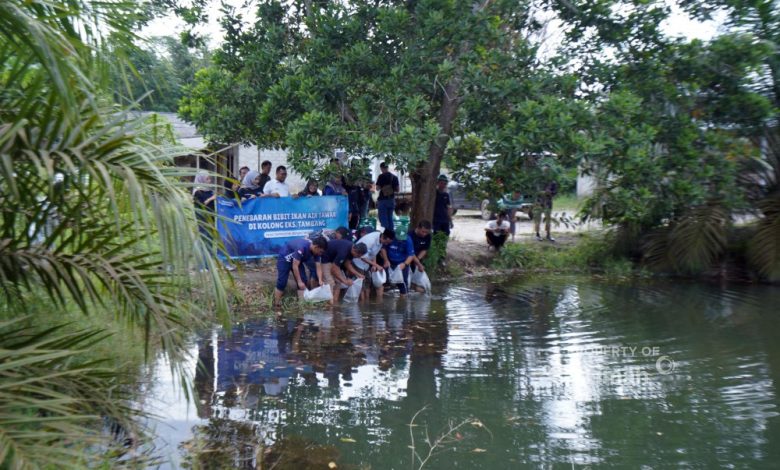 BANGKA TENGAH — PT TIMAH Tbk kembali melakukan upaya pemulihan lingkungan pascatambang dengan menebar ribuan bibit ikan endemik Bangka Belitung dan ikan air tawar di kolong eks tambang di Pesantren Ibnu Sabil, Desa Cambai, Bangka Tengah, Jumat (31/10/2025).
