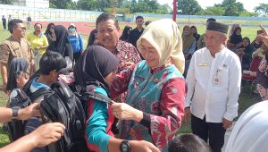 Hal itu disampaikan saat acara penyerahan bantuan beasiswa dan perlengkapan sekolah di Stadion Depati Amir, Jumat (7/11/2025).