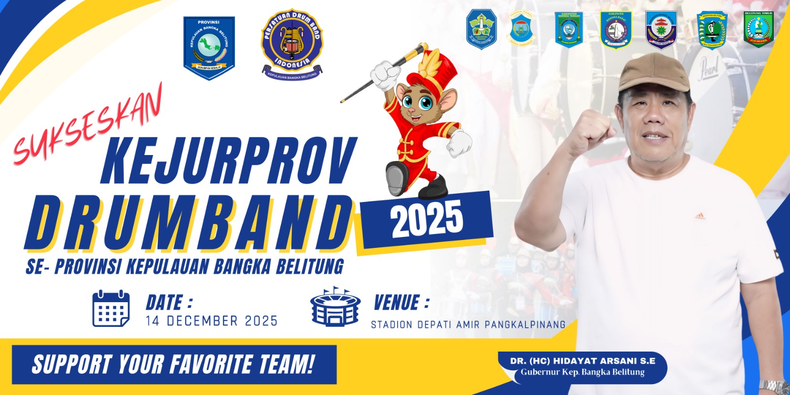 PANGKALPINANG — Provinsi Kepulauan Bangka Belitung akan kembali menggelar Kejuaraan Provinsi (Kejurprov) Drumband 2025 pada 14 Desember 2025 di Stadion Depati Amir, Pangkalpinang. Ajang ini menjadi momentum pembinaan atlet drumband sekaligus pemanasan menuju Pekan Olahraga Provinsi (Porprov) Babel 2026.