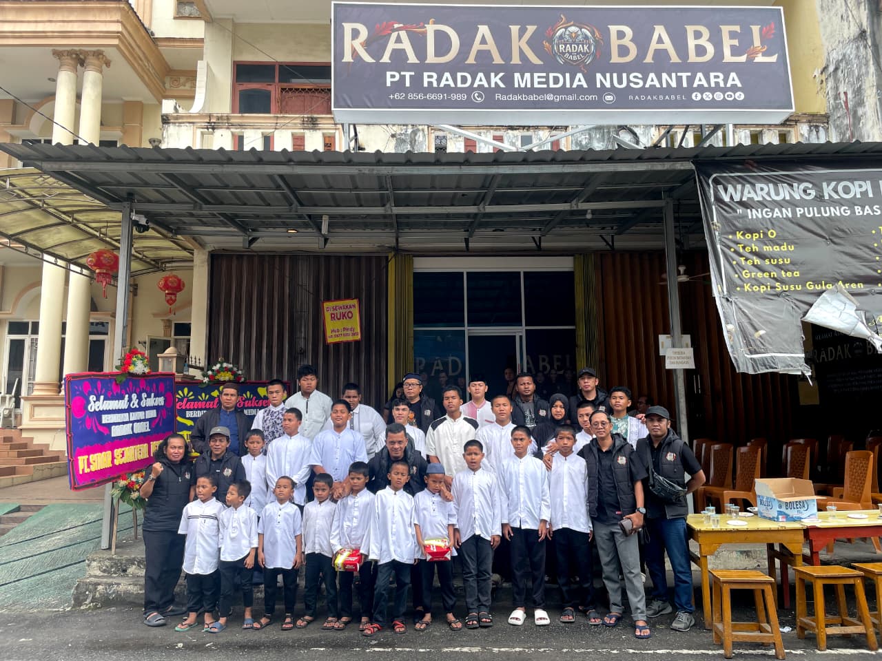 Peresmian kantor berlangsung sederhana dan ditandai dengan pemotongan nasi tumpeng serta penyerahan santunan kepada 25 anak yatim piatu dari Panti Asuhan LKSA Muhammadiyah Pangkalpinang. Kegiatan tersebut mencerminkan nilai empati dan tanggung jawab sosial yang ingin dijaga dalam kerja jurnalistik Radak Babel.