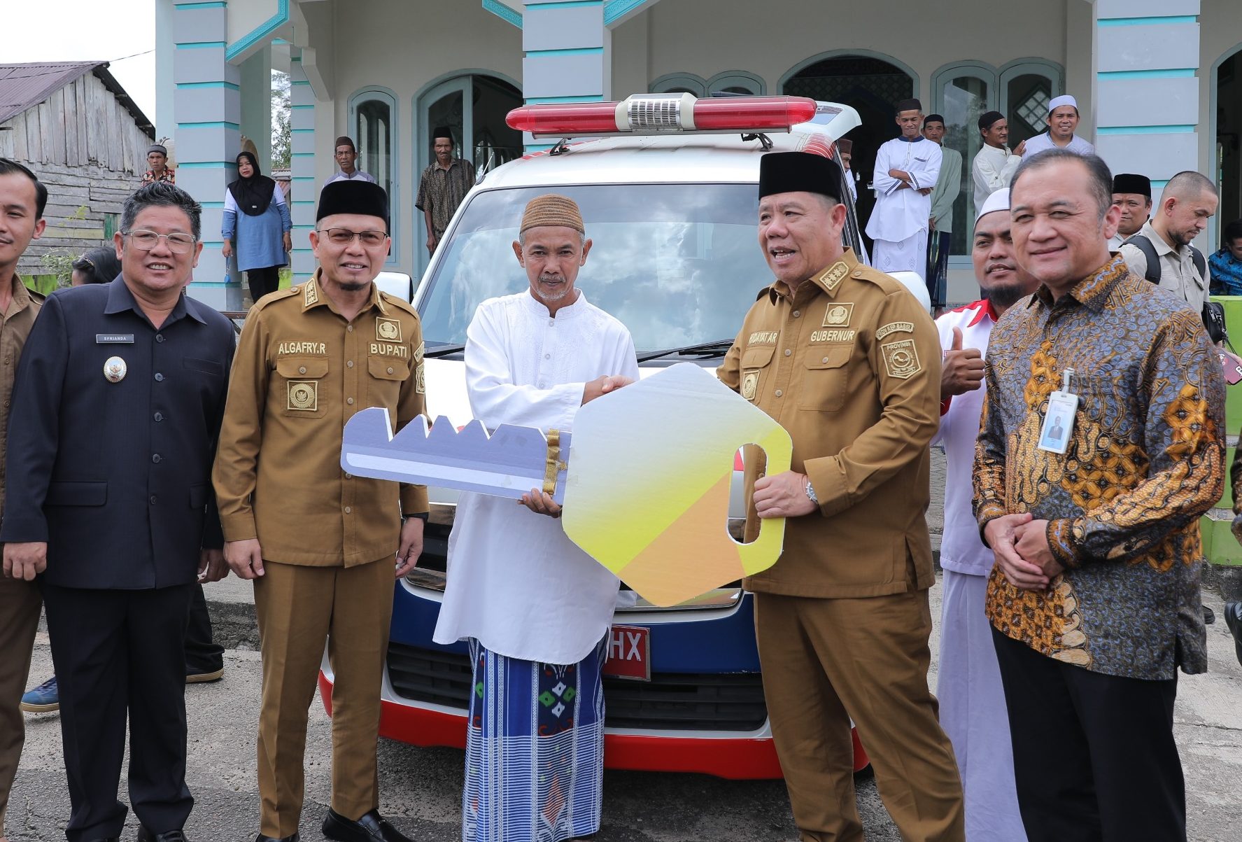 BANGKA TENGAH — Gubernur Kepulauan Bangka Belitung, Hidayat Arsani, menyerahkan satu unit ambulans kepada masyarakat dan jamaah Masjid Al Muhajirin, Dusun Nunggal, Desa Kemingking, Kabupaten Bangka Tengah, Selasa (24/2/2026).