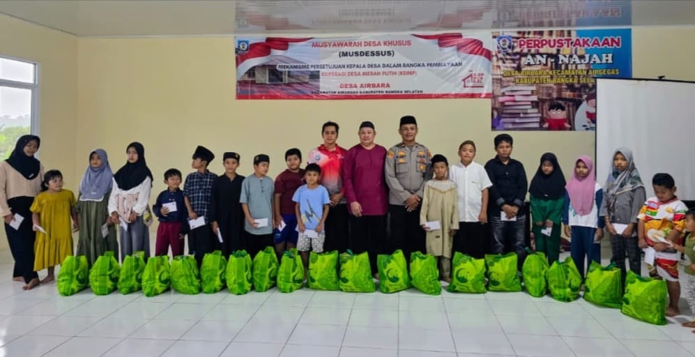BANGKA SELATAN, MEDIAQU.id — Pemerintah Desa Airbara, Kecamatan Airgegas, Kabupaten Bangka Selatan menyalurkan santunan kepada anak yatim dalam sebuah kegiatan yang digelar di Kantor Desa Airbara, Rabu (11/3/2026).