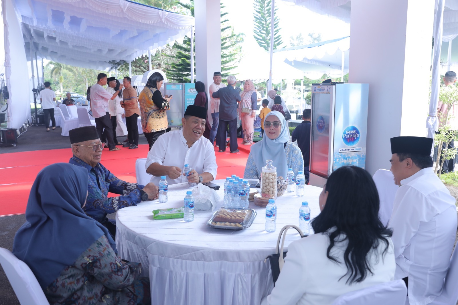 Hidayat Arsani, didampingi keluarga, menyambut setiap tamu dengan senyum sumringah. Baginya, Idulfitri adalah momentum krusial untuk mempertebal rasa persaudaraan dan mengokohkan pondasi kebersamaan dalam membangun daerah.