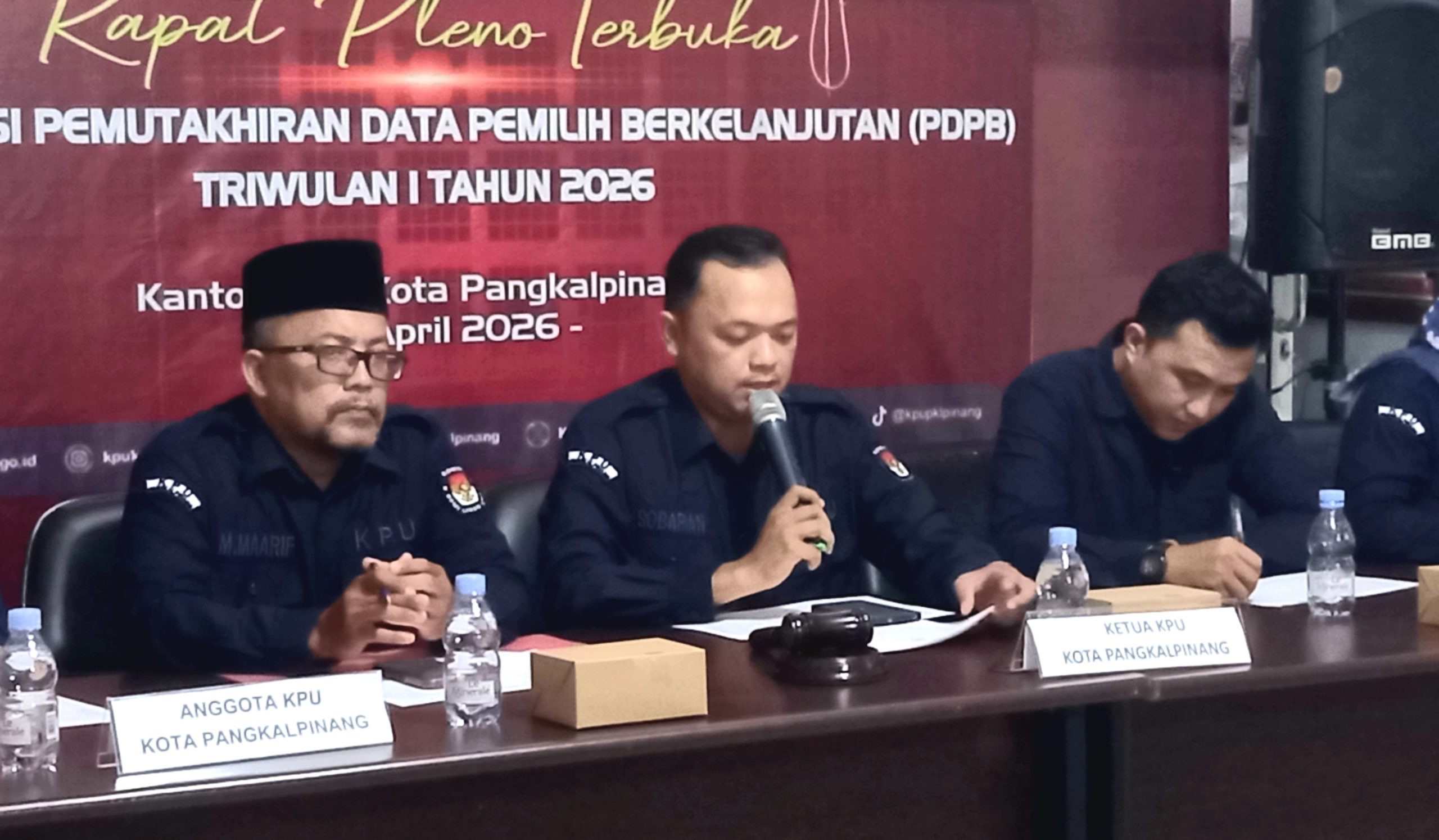 PANGKALPINANG, MEDIAQU.id – Komisi Pemilihan Umum (KPU) Kota Pangkalpinang menetapkan hasil pemutakhiran data pemilih berkelanjutan (PDPB) Triwulan I Tahun 2026 dalam rapat pleno terbuka yang digelar di Kantor KPU Pangkalpinang, Kamis (2/4/2026). Rapat pleno tersebut dipimpin langsung oleh Ketua KPU Kota Pangkalpinang, Sobarian, yang menyatakan kegiatan itu merupakan agenda rutin setiap tiga bulan sesuai ketentuan yang berlaku. “Rapat pleno terbuka rekapitulasi pemutakhiran data pemilih berkelanjutan Triwulan I Tahun 2026 saya nyatakan dibuka dan terbuka untuk umum,” ujar Sobarian. Dalam rapat tersebut, KPU memaparkan hasil pemutakhiran data pemilih sejak Desember 2025 hingga 30 Maret 2026. Berdasarkan data, jumlah pemilih pada akhir Triwulan IV Tahun 2025 tercatat sebanyak 170.136 orang, terdiri dari 84.261 laki-laki dan 85.875 perempuan. Selama periode pemutakhiran Triwulan I Tahun 2026, terdapat penambahan pemilih baru sebanyak 488 orang, dengan rincian 232 laki-laki dan 256 perempuan. Selain itu, terdapat 52 pemilih yang dinyatakan tidak memenuhi syarat serta 59 pemilih yang mengalami perubahan data atau status. Hingga 2 April 2026, jumlah pemilih di Kota Pangkalpinang tercatat sebanyak 170.572 orang, terdiri dari 84.472 laki-laki dan 86.100 perempuan. Dengan demikian, terjadi kenaikan jumlah pemilih sebanyak 436 orang dibandingkan data sebelumnya. Sobarian menjelaskan, pemutakhiran data pemilih dilakukan secara berkelanjutan dalam empat periode setiap tahun atau per triwulan. Ia menambahkan, selain data pemilih umum, KPU juga melakukan pemutakhiran pada lokasi khusus seperti lembaga pemasyarakatan yang memiliki karakteristik berbeda. “Di lokasi khusus seperti lembaga pemasyarakatan, data pemilih bersifat dinamis karena adanya pergerakan keluar-masuk warga binaan,” jelasnya. KPU Pangkalpinang, lanjutnya, terus berkoordinasi dengan berbagai pihak terkait guna memastikan akurasi dan validitas data pemilih. "Pemutakhiran data pemilih berkelanjutan ini menjadi bagian dari upaya KPU dalam menjaga kualitas daftar pemilih agar tetap mutakhir dan dapat dipertanggungjawabkan menjelang pelaksanaan pemilu mendatang," kata Sobarian.(Suf)