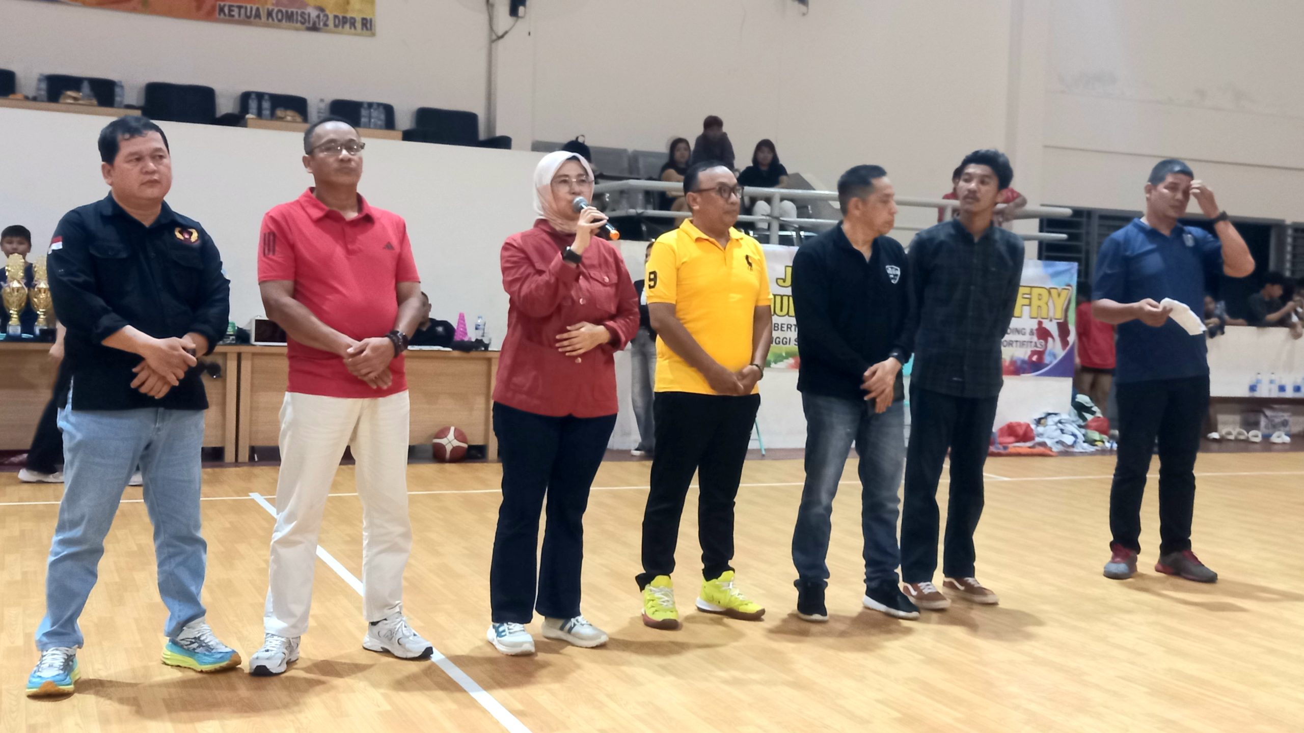 Dalam sambutannya, Dessy menyampaikan apresiasi kepada seluruh panitia, pengurus, serta pihak terkait yang telah menyukseskan turnamen bola basket tersebut.